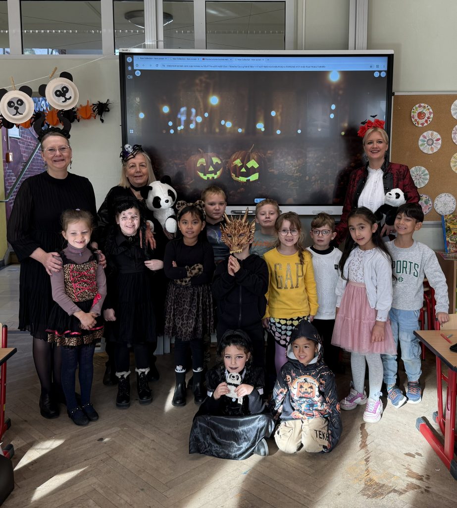 Am 31.10.2025 hatten wir unseren jährlichen Thementag „Halloween“ und feierten den Geburtstag unserer Schulleiterin Frau Dumont-Knopp.